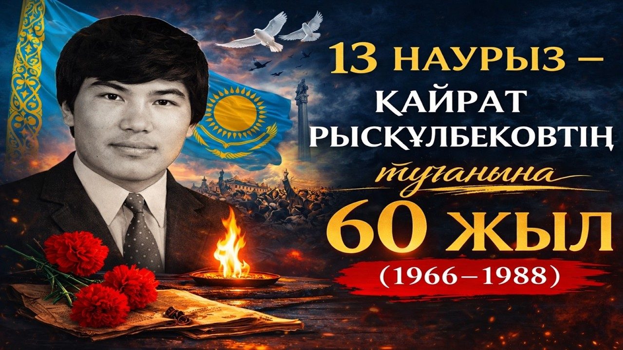 13 наурыз – қазақ халқының тәуелсіздік жолындағы күресімен аты бірге аталатын тұлғалардың бірі, Желтоқсан көтерілісінің қаһарманы Қайрат Рысқұлбековтің туған күні. Биыл оның дүниеге келгеніне 60 жыл толып отыр. Қайрат Рысқұлбеков – 1986 жылғы Желтоқсан оқиғасы кезінде әділетсіз айыптауға ұшырап, кеңестік жүйенің қатал үкіміне қарсы қайсарлықпен тұрған жас. Оның тағдыры қазақ жастарының еркіндікке деген ұмтылысының символына айналды.