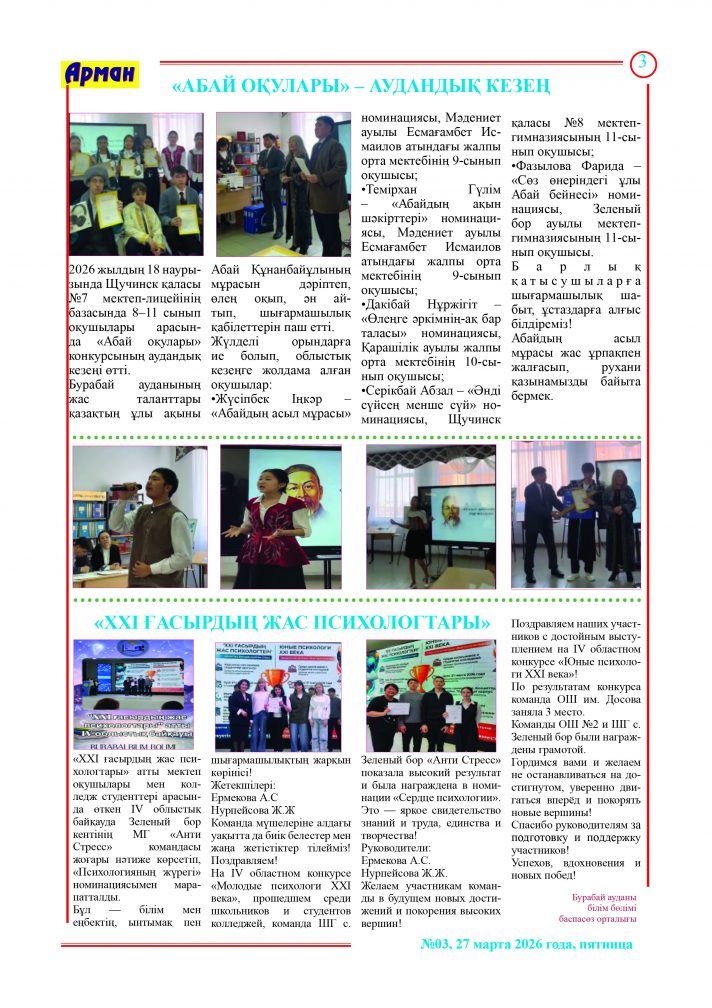 «Ақмола облысы білім басқармасының Бурабай ауданы бойынша білім бөлімінің жанындағы Щучинск қаласының «Арман» балалар-жасөспірімдер шығармашылық орталығы» мемлекеттік коммуналдық қазыналық кәсіпорны