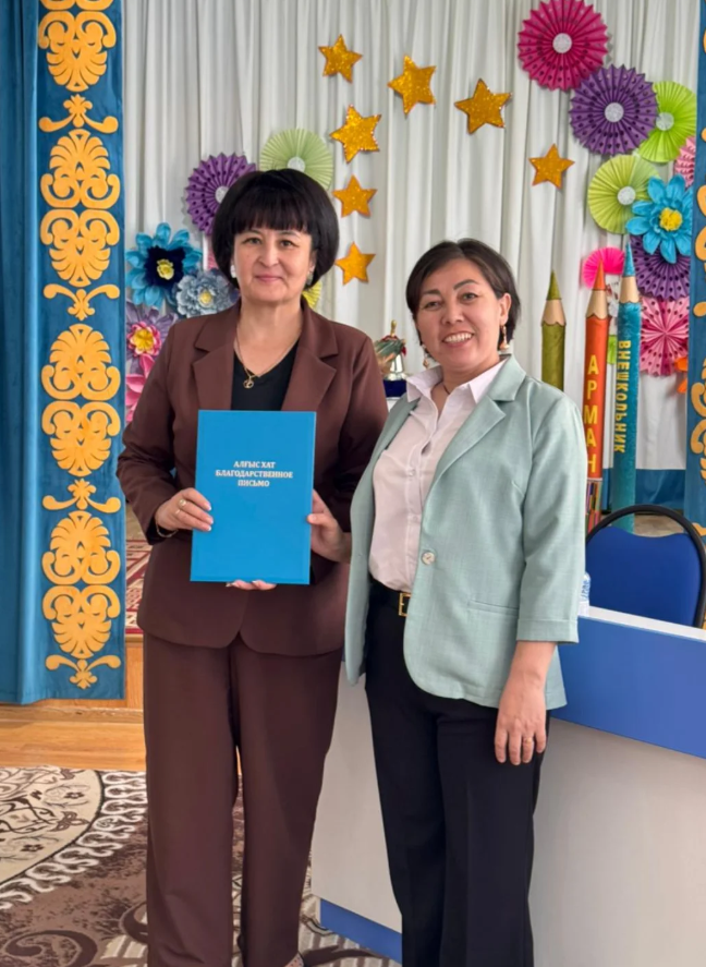 Домбыра студиясының қосымша білім беру педагогі Ауенова Бибигуль Дюйсембаевна жоғары жетістіктері мен адал еңбегі үшін Бурабай ауданының әкімі А.С. Садыковтың Алғыс хатымен марапатталды.