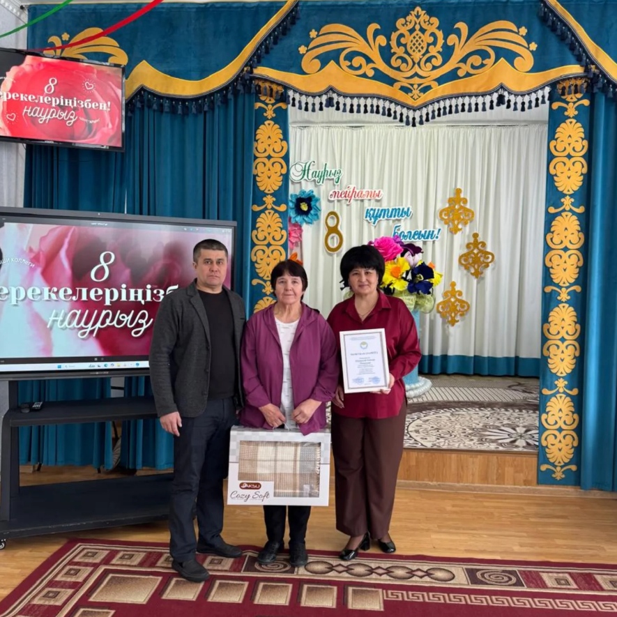 Бухгалтер Самарбаева Шамшибану Зулхарнаевна кәсіподақ комитетінің алғыс хатымен және естелік сыйлығымен марапатталды.