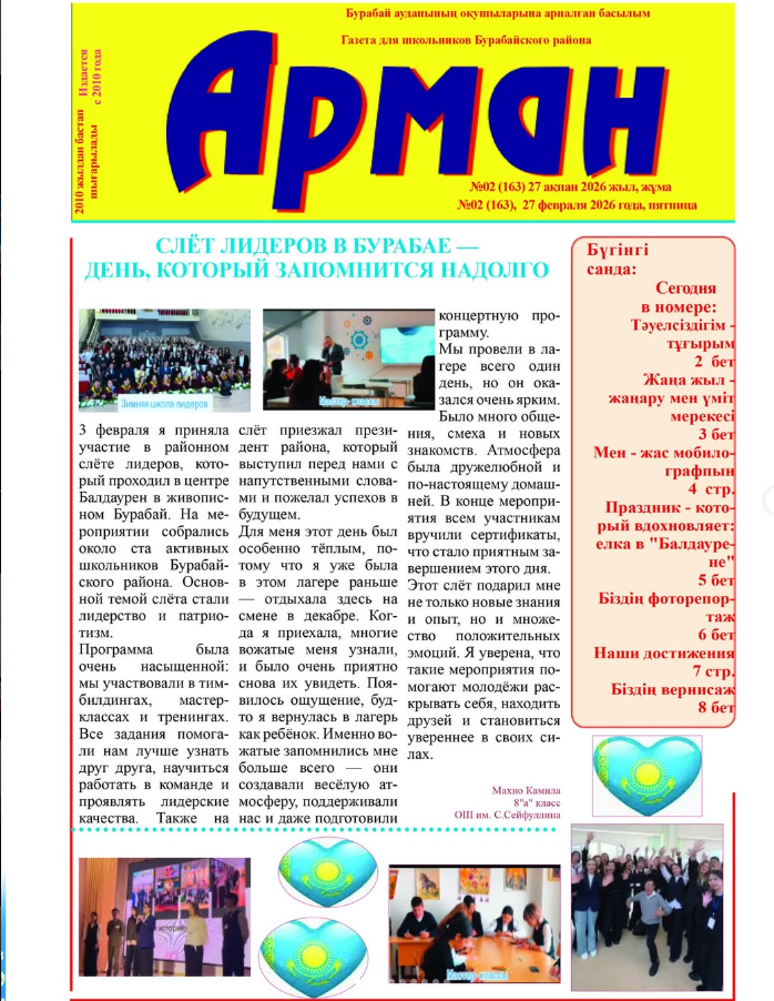 Балалар мен жасөспірімдерге арналған "Арман" газетінің кзекті саны.