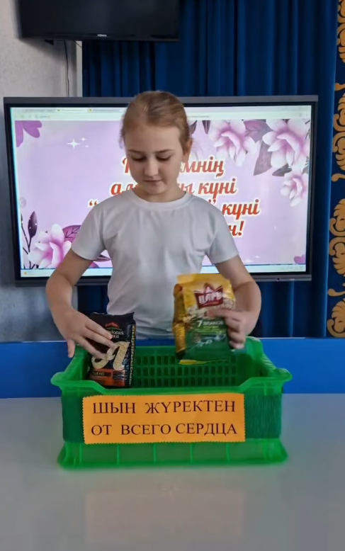 Жылы жүректермен олар бүгін қолдауға ерекше мұқтаж жандармен азық-түлікпен бөлісті.