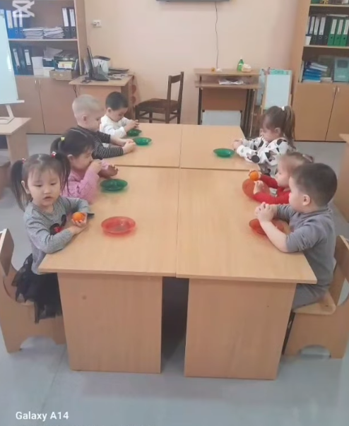 Бүгін "Росток" тобында балалар қабықтан "Мандарин" қолөнерін жасады.