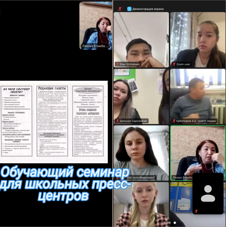 Онлайн режимде, ZOOM платформасында мектеп баспасөз қызметін белсенді жүргізу, мектеп газетін дұрыс беттеу жөнінде оқыту семинары өтті.